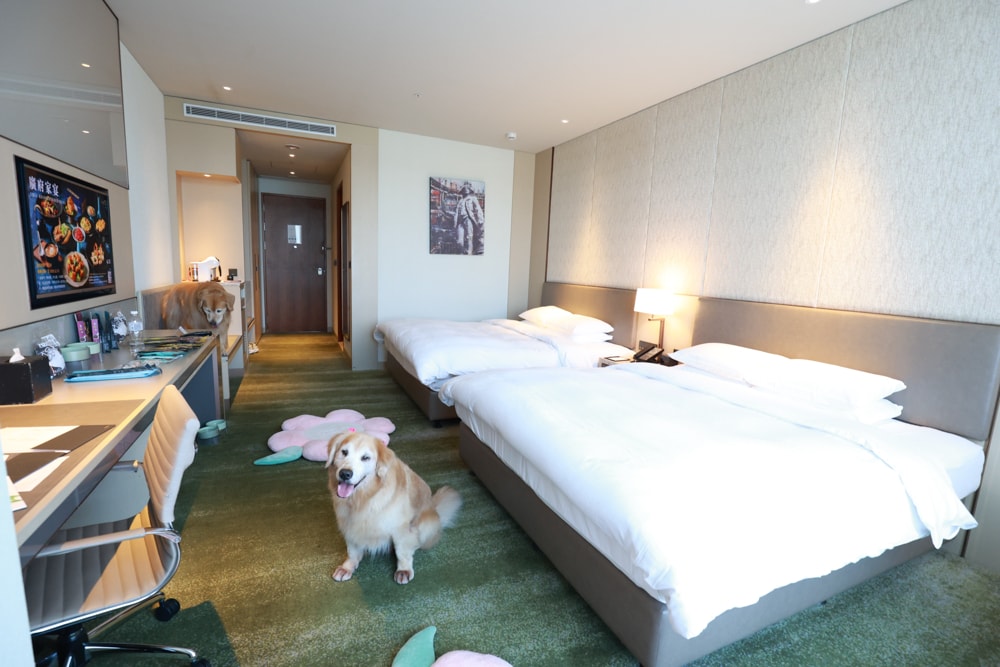 床房( 有窗兩小床) 」 可攜寵入住。 需自行攜帶寵物用品, 像是: 睡墊、 餐碗和玩具等, 飯店只會提供尿布墊。 毛孩是不能上床的。 每房加收清潔費 TWD$500, 不限入住毛孩數量。