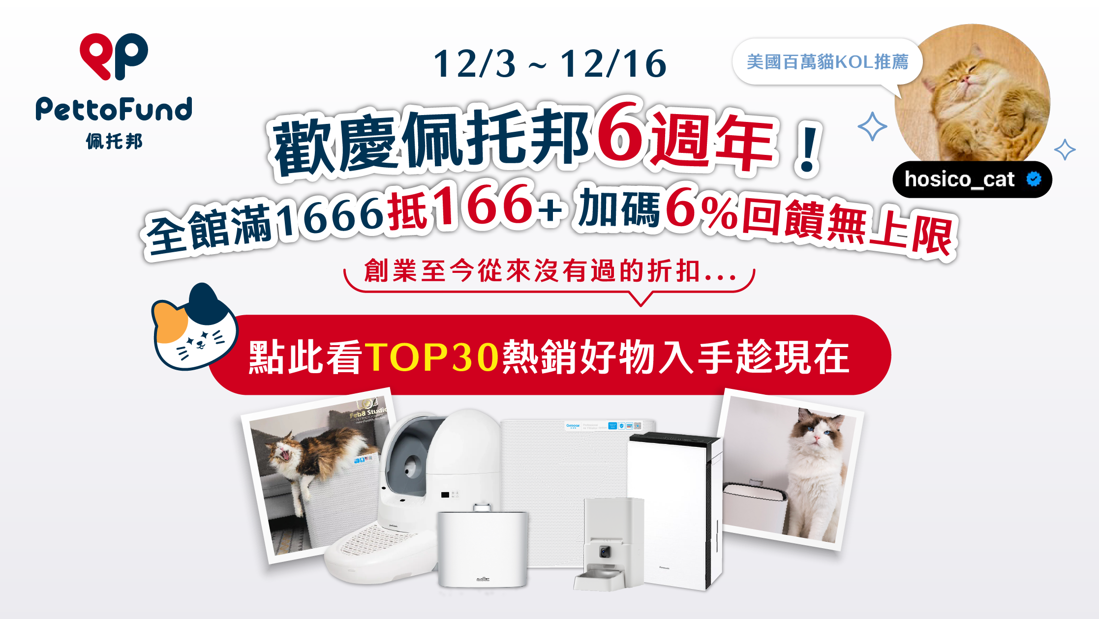 至2025-12-15T15:00:00.000+00:00截止 全店,歡慶佩托邦6週年!全館滿1666現抵166+會員限時加碼最高6%購物金回饋🧧