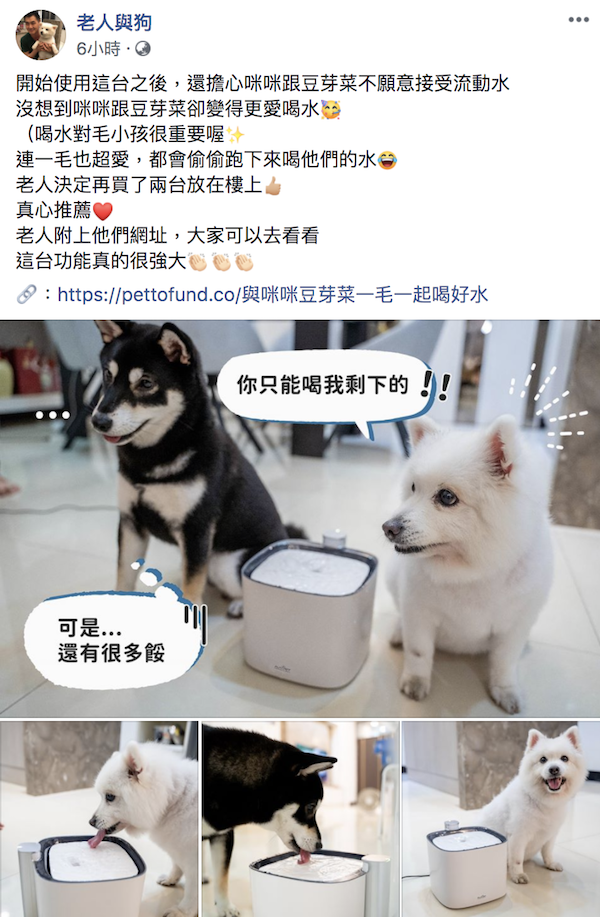2019創立以來,感謝超過6000名毛友支持,並接續與我們籌備這次的「讓毛孩愛上喝水,喝到真正乾淨好水計畫」 😻 看到許多毛孩與毛主人,變得更開心、更輕鬆、更方便省時,也更享受生活,團隊比什麼都重視與大家一同實現美好毛孩家庭生活。敬邀您,加入PettoFund的專屬為毛孩家庭的設計提案。 - PettoFund, Leo.