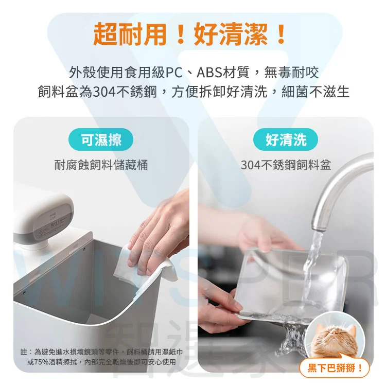 結合寵物攝影機功能,鏡頭360°水平轉動+110°垂直擺動,視角不受限,轉動零噪音,細膩貓咪也能安心靠近