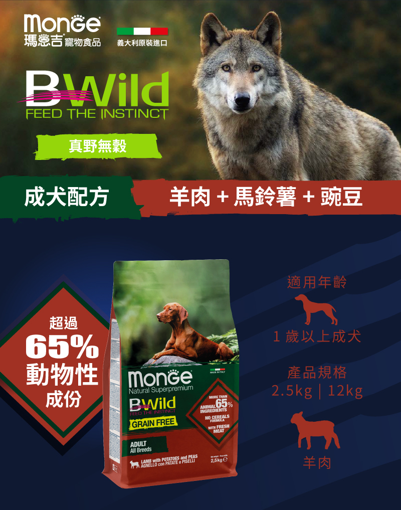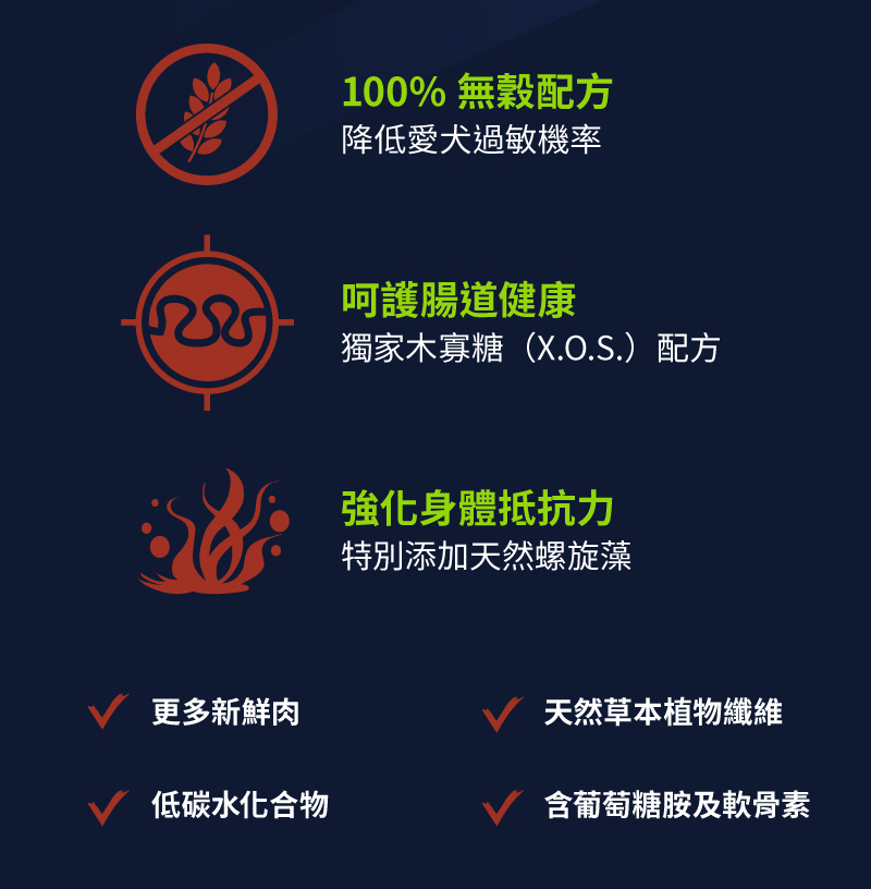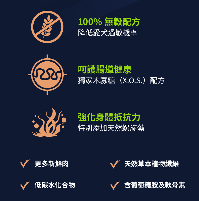 ●100%無穀羊肉/鮭魚配方,幫助愛犬美膚亮毛/敏感腸胃