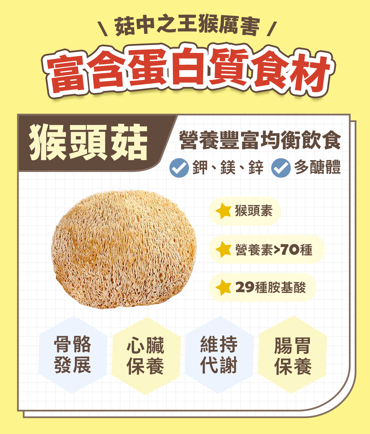 ▶添加菇中之王『猴頭菇』,富含多醣體及29種胺基酸