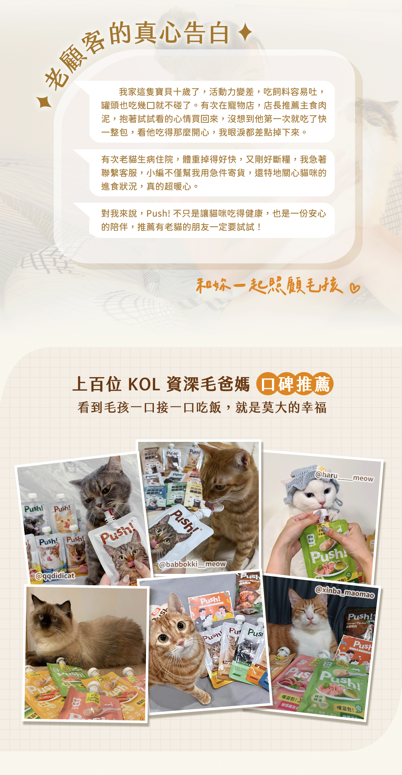 Push! 堅信「簡單就是健康,健康就要簡單」。每日每刻吃好的食物,讓毛孩維持體態及食慾,相互陪伴每一天就是幸福!